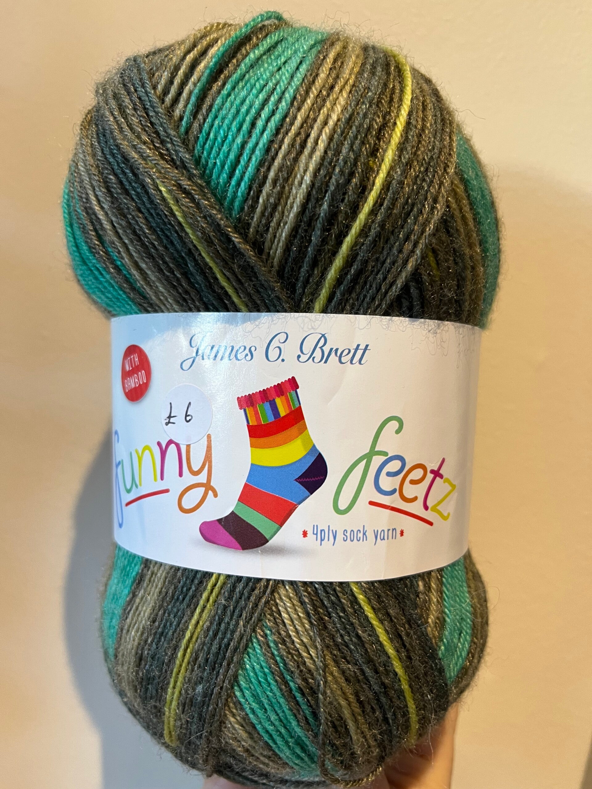 FZ22 Fuzzy Feetz Aqua Blue/Brown mix 4 ply sock Yarn from James C Brett