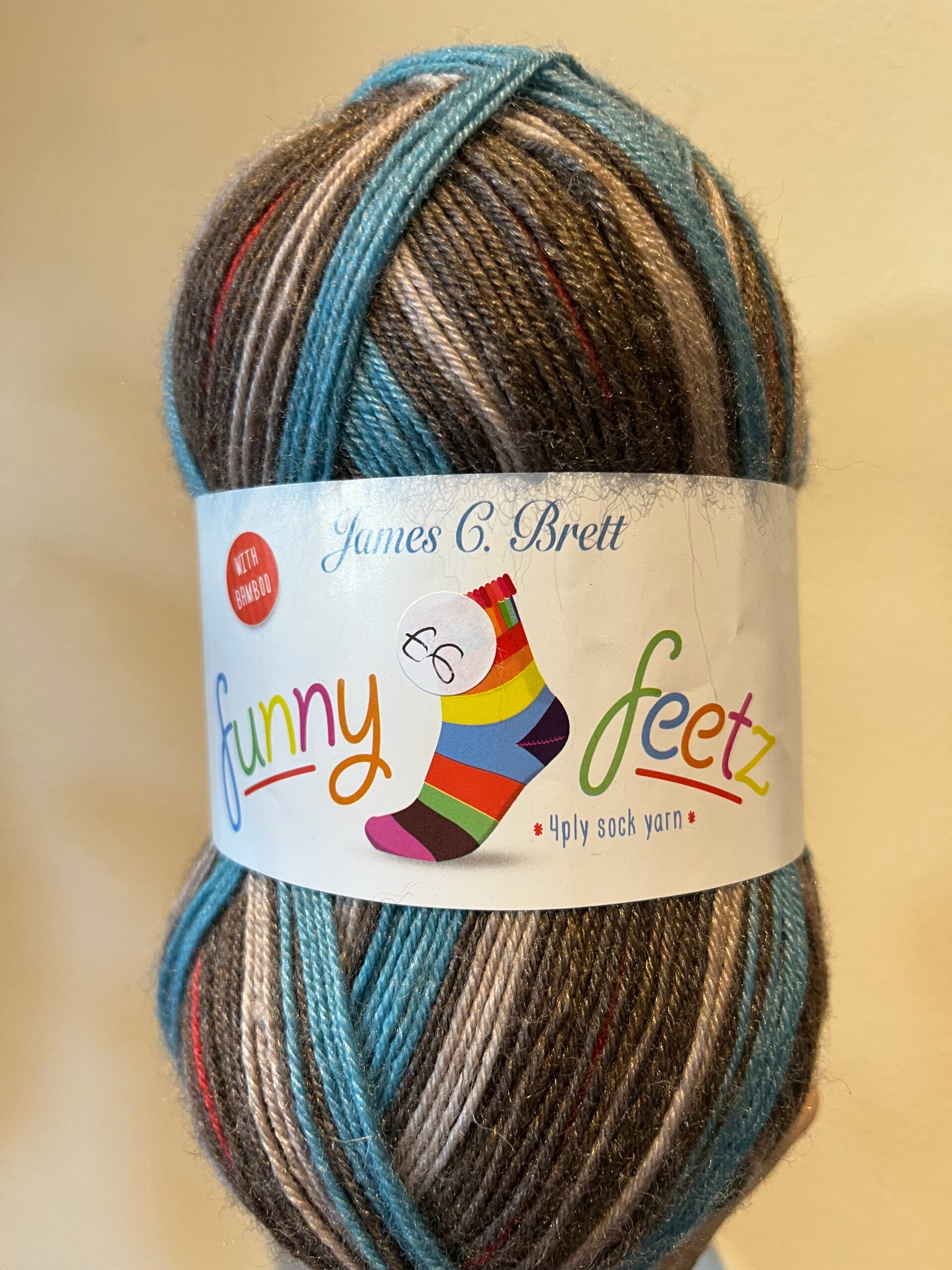 FZ23 Fuzzy Feetz pink/grey/yellow mix 4 ply sock Yarn from James C Brett