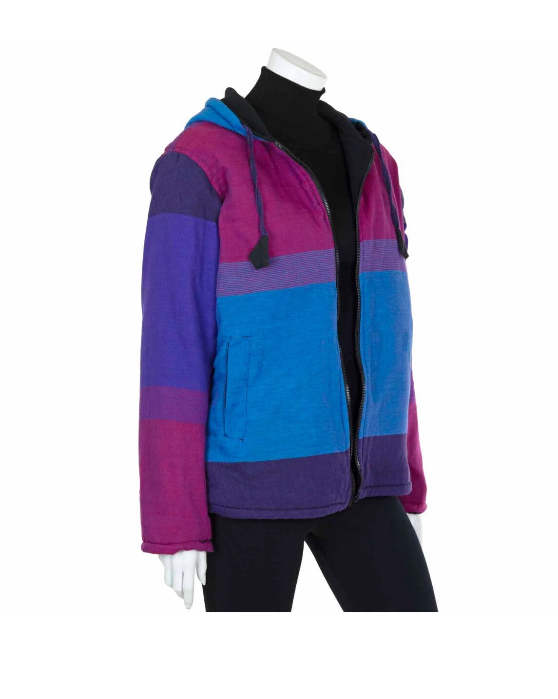 ๐ This gorgeous jacket is both practical and eye-catching! It features two handy front pockets, a full zip fastening, and a drawstring hood for extra snugness. Whether you’re heading to a gig, a night market, or just living your brightest life, this jacket brings the colour and comfort.